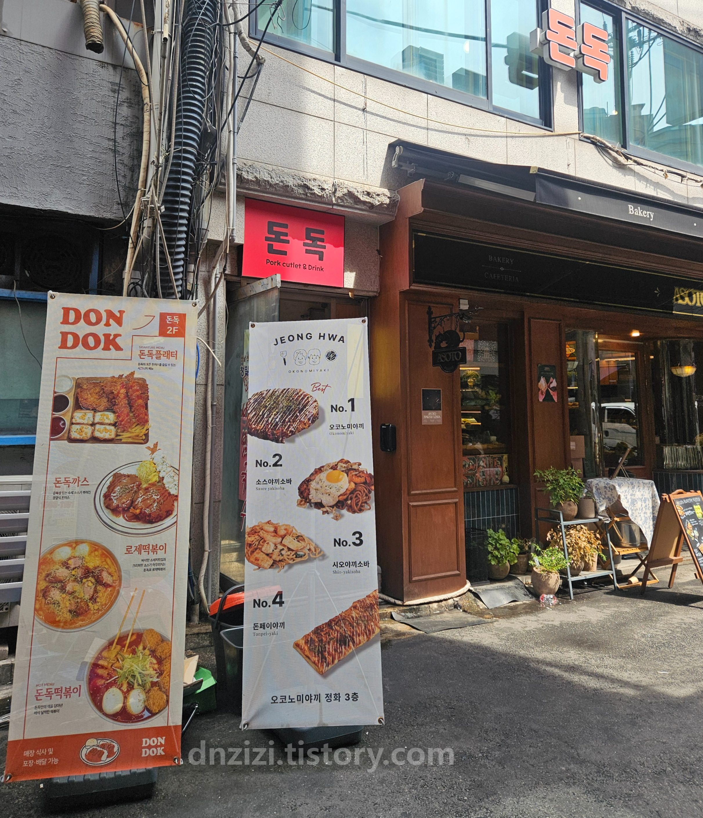 돈독은 저 길로 2층에 위치한데 계단이 가파르고 좁아요.