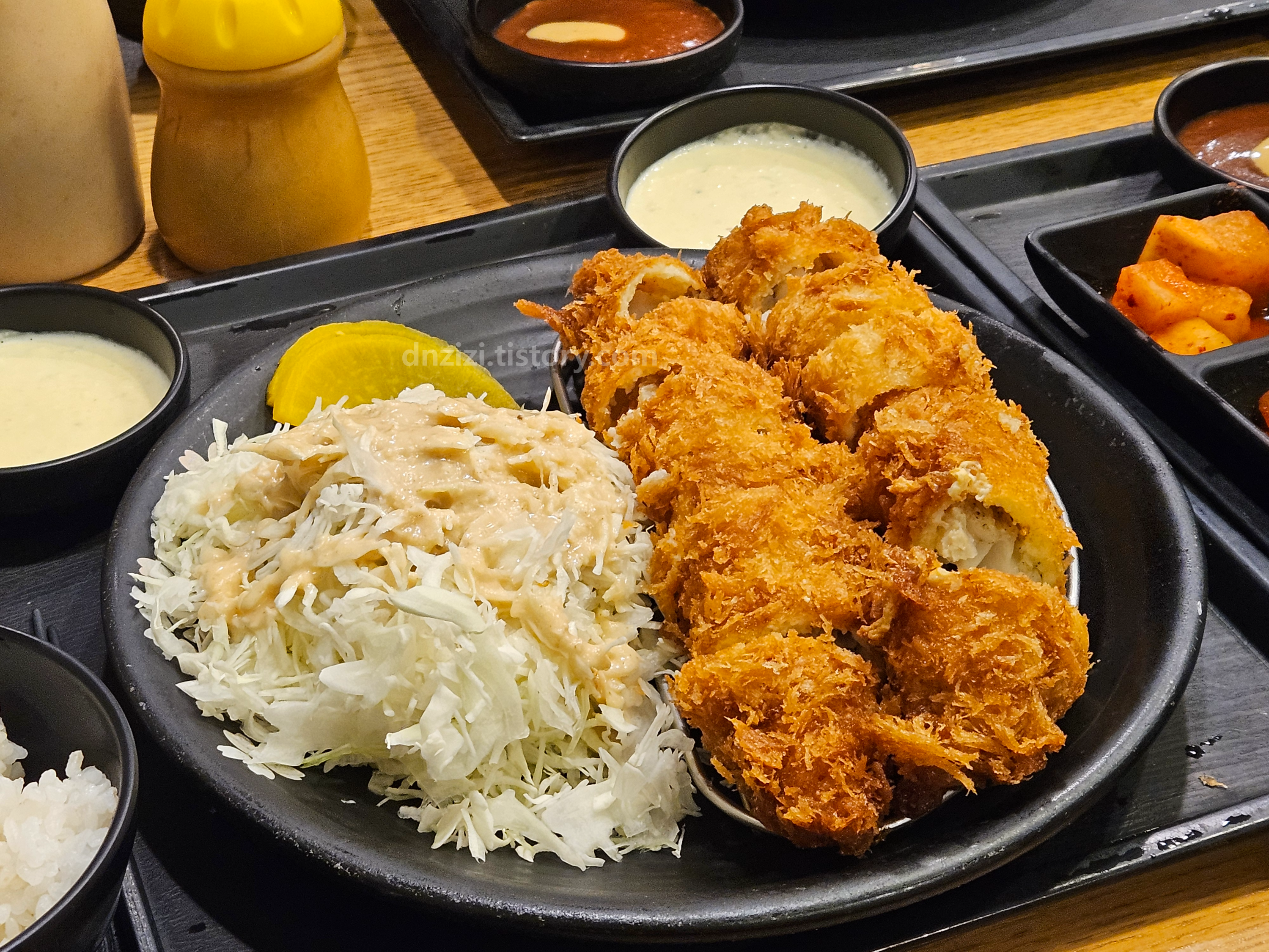 돈까스는 소스에 겨자 들어간 게 킥이에요.